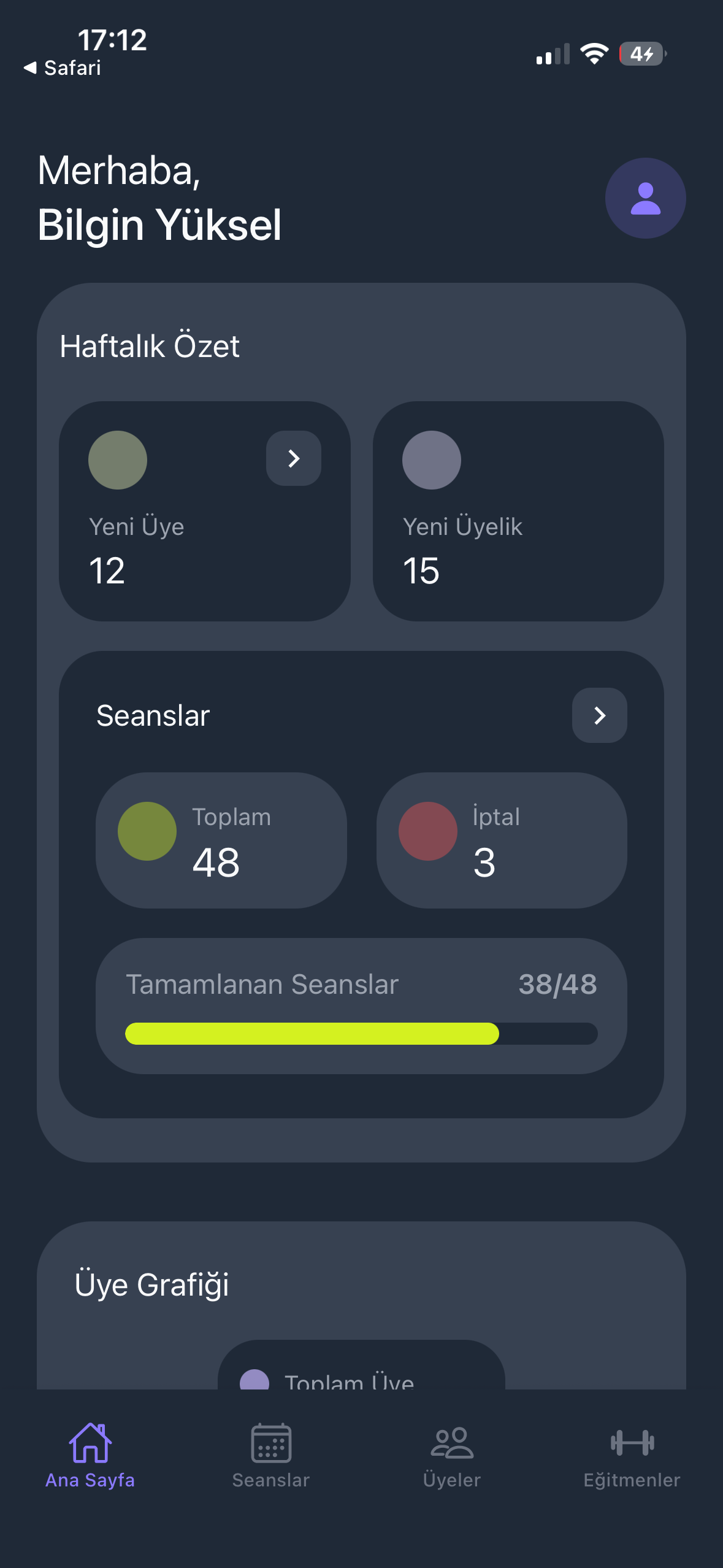 Üyelerinize seanslar atayın, vücut ölçümleri ve gelişim grafiklerini uygulama üzerinden sunun.